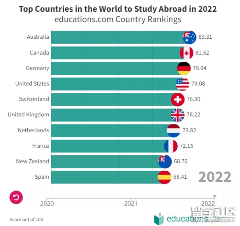 專注出國(guó)留學(xué)信息發(fā)布的全球教育網(wǎng)站發(fā)布了2022年全球十大最佳留學(xué)國(guó)家排行榜。