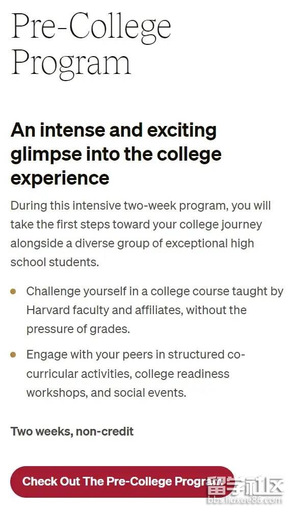 為期兩周,無學分,體驗哈佛大學的校園學習和生活,沒有成績壓力。