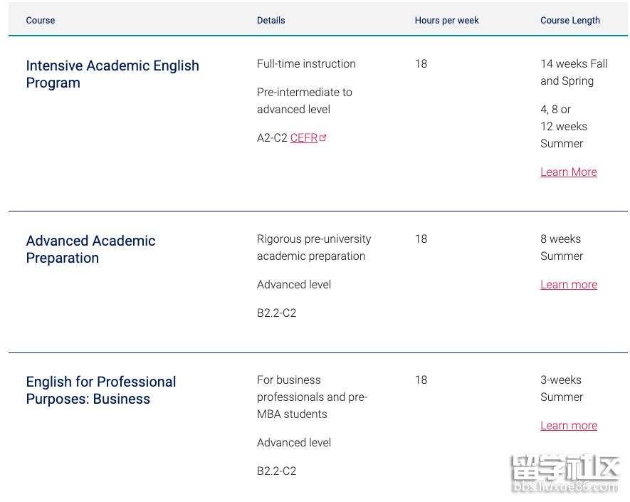 哥倫比亞大學按照不同的人群與需求,還專門開設了一系列語言培訓課程,共分為 4 種不同類型,每類課程的課時與課程長度各不相同。