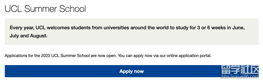 針對大學在讀本科生,UCL 在 6 -8 月期間提供為期 3 周或 6 周的夏校學習,均為學分課程。每個課程模塊(Module)都是 15 個學分,相當于美國 4 個學分,歐洲 7.5 個 ECTS 學分。