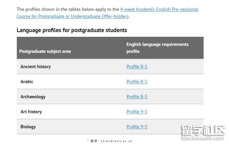 圣安德魯斯大學(xué)的語言班對于每個(gè)專業(yè)都有固定的要求,如上圖所示,僅以Ancient history專業(yè)為例,講解一下語言班的入學(xué)要求Profile 8-S。