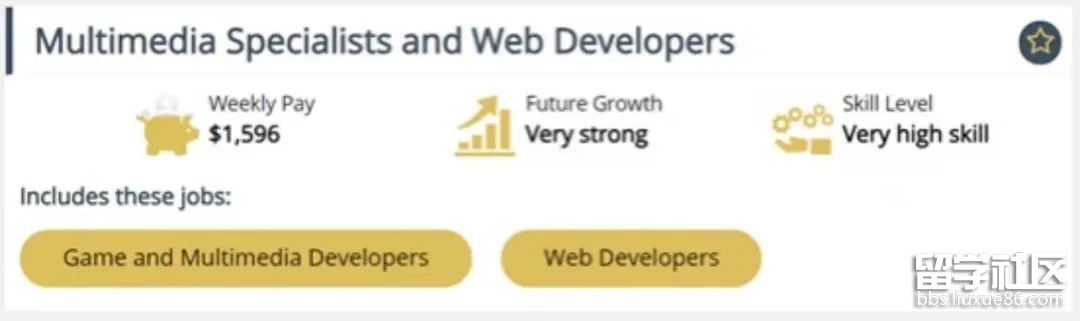 游戲開發(fā)專業(yè)(Game Development)的學(xué)生通常會獲得這個認(rèn)證??傮w工資水平一般,但就業(yè)增長強勁。也比較適合回國發(fā)展,但畢業(yè)后也可以選擇移民。