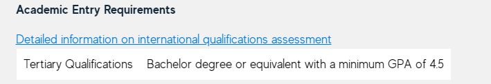 ? 均分需要達到相當(dāng)于西澳大學(xué)65%水平