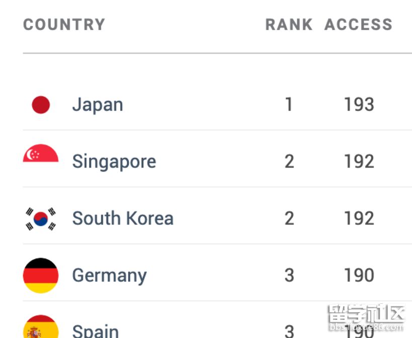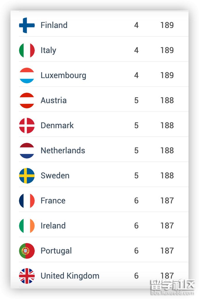 并列第三的位置,則由歐洲老牌強國德國和西班牙護照獲得,免簽數(shù)都是190個。???