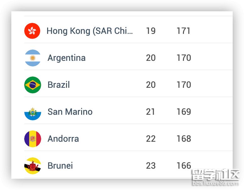緊隨日本之后的,依然是兩個東亞的發(fā)達國家。韓國和新加坡護照都以免簽數(shù)192個并列排名全球第二位。??????