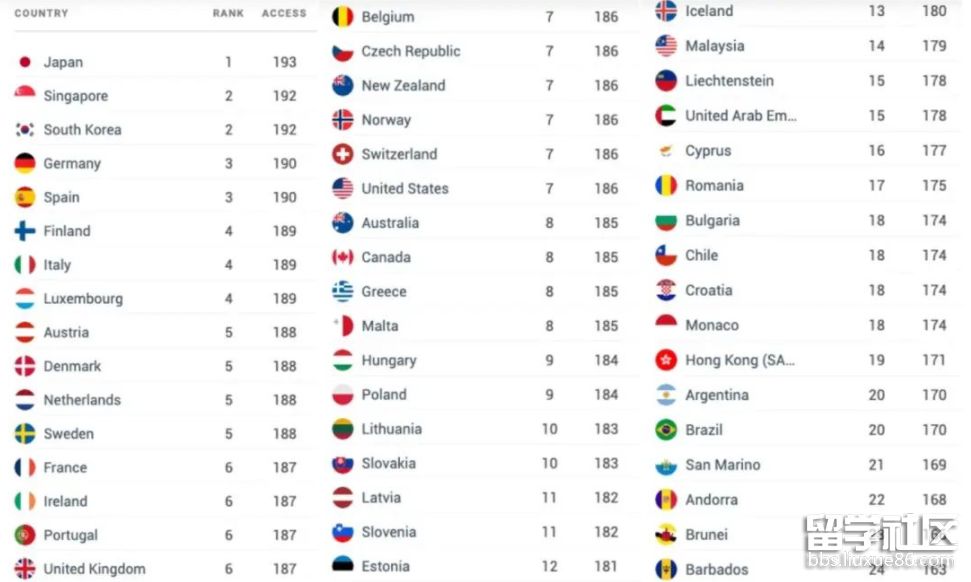 2023年第一季度的全球護照排名終于新鮮出爐了。本次排名綜合了全球199個國家截至2013年1月10日的數(shù)據(jù),數(shù)據(jù)來源于世界銀行與國際航空運輸協(xié)會(IATA)。