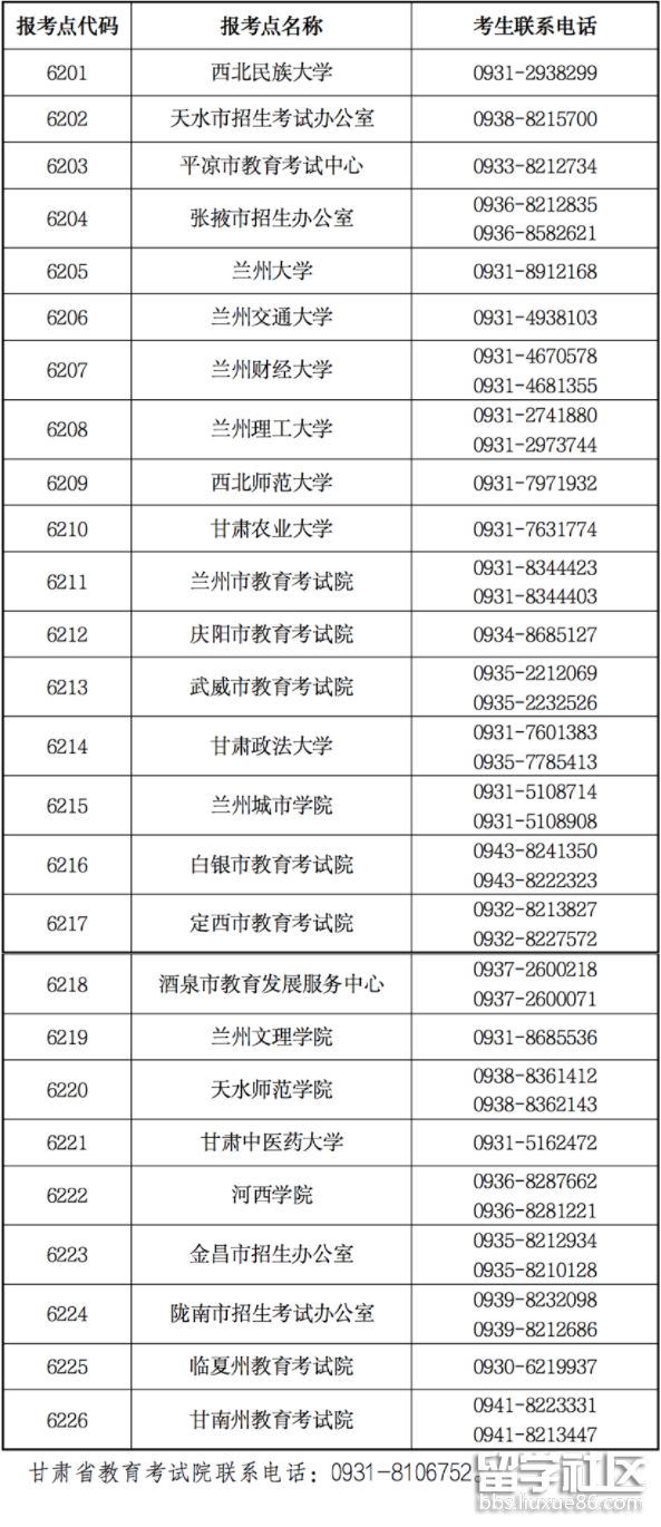 附件二:甘肅省各報(bào)考點(diǎn)聯(lián)系電話