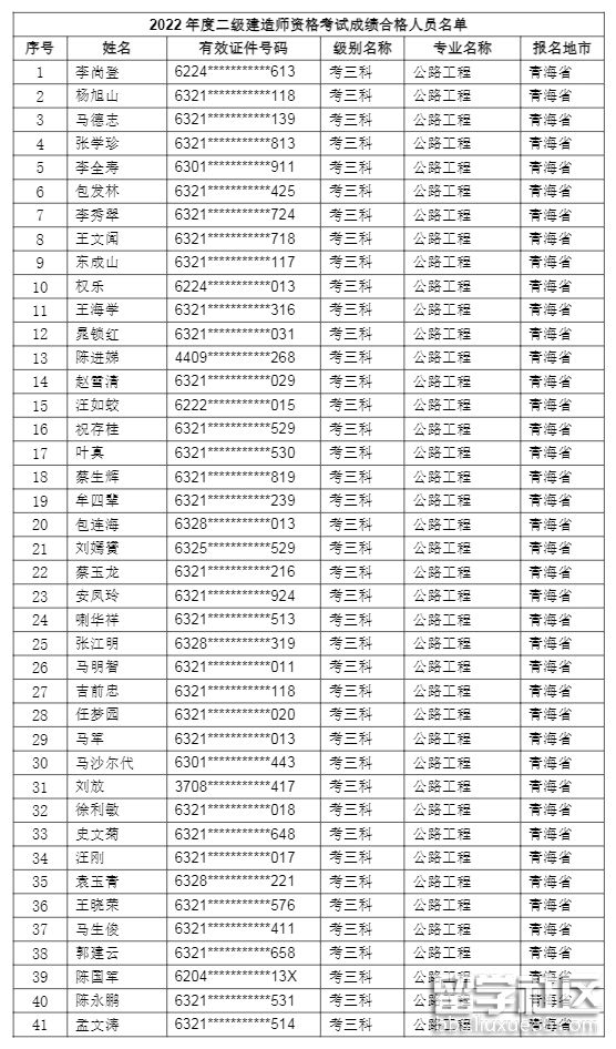 青海省2022年度二級建造師資格考試成績合格人員公示