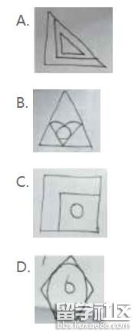 參考解析:題干中的圖形由三部分組成,外圈和中圈圖形完全一致,且有兩條公共邊,內(nèi)圈是一個(gè)圓形,不與外圈和中圈相交。觀察選項(xiàng),只有C項(xiàng)符合此規(guī)律。故本題選C。