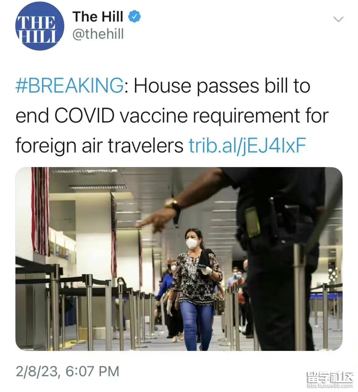 不過就在當?shù)貢r間2月8日,美國眾議院以227票贊成、201票反對,通過終止要求大多數(shù)外國旅客接種新冠疫苗才可入境的要求。
