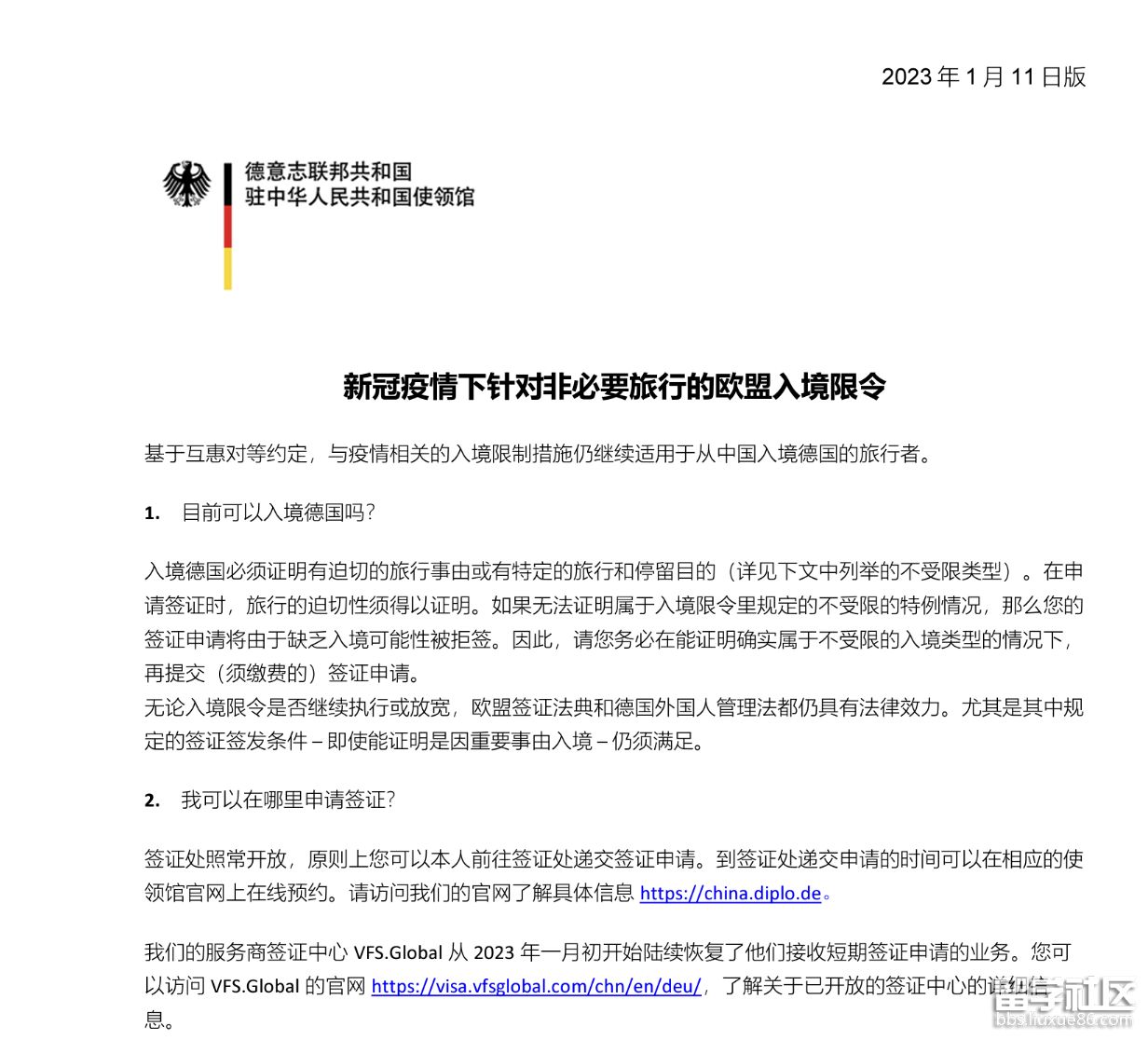 根據(jù)德國駐中國大使館的2023年1月最新更新的明文規(guī)定:
