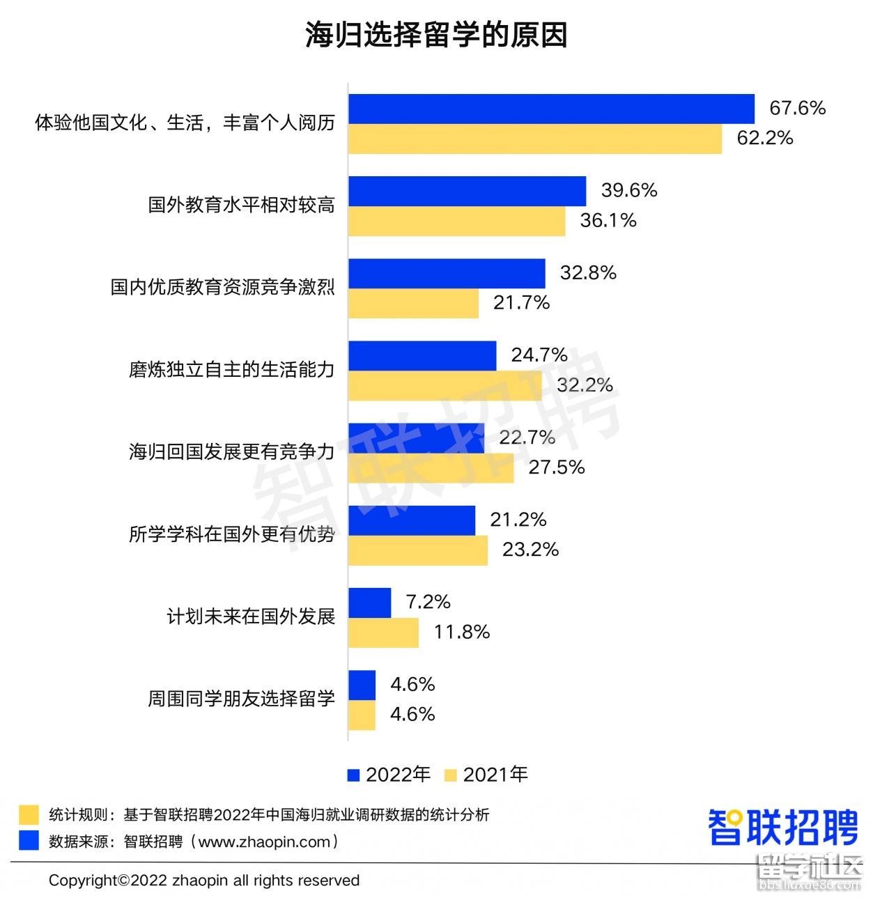 近7成海歸為豐富閱歷而留學(xué),國內(nèi)教育資源競爭激烈是重要原因