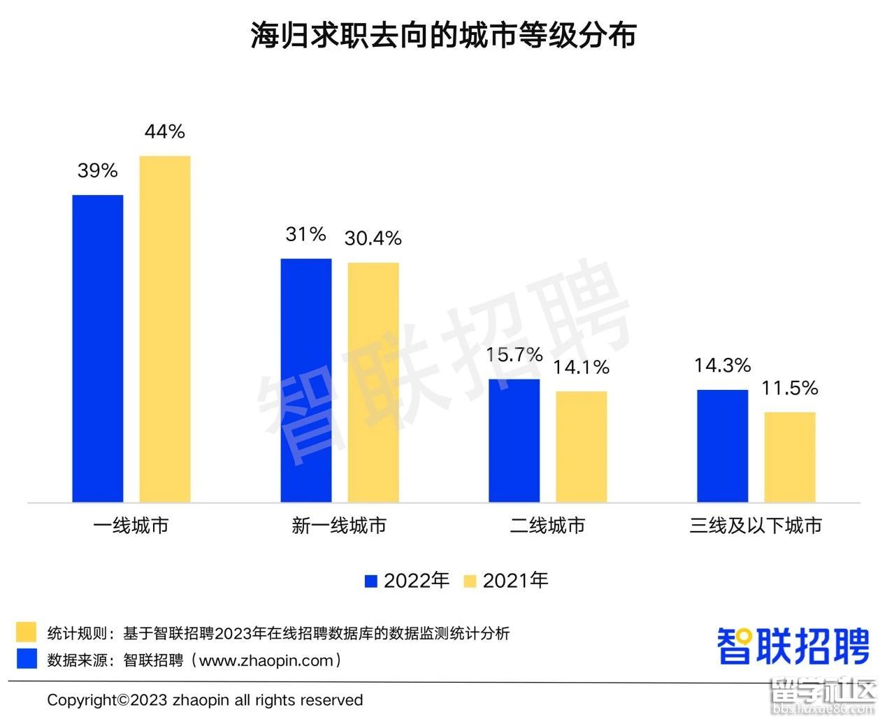 海歸前往新一線、二線城市發(fā)展意愿提升