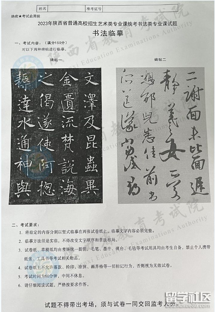 2023年陜西省普通高校招生藝術(shù)類專業(yè)課統(tǒng)考書法類專業(yè)課試題