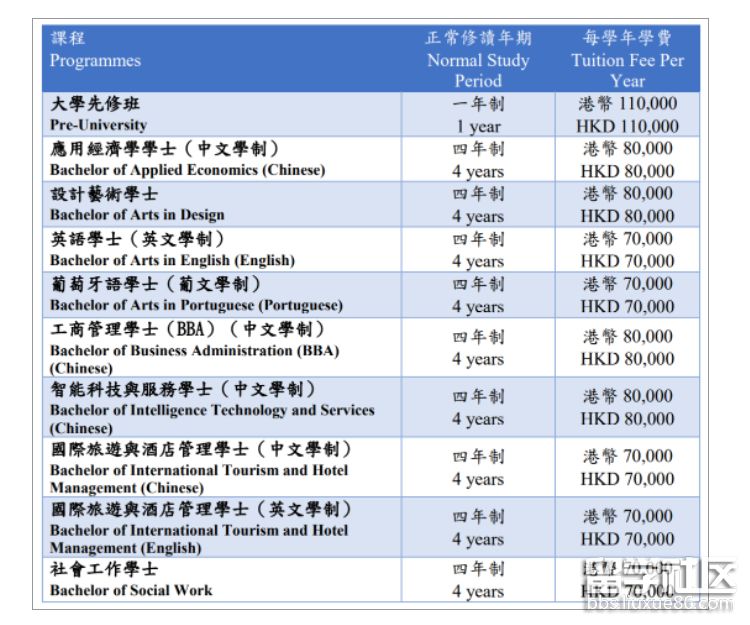 學(xué)費(fèi):78000澳門幣/年。