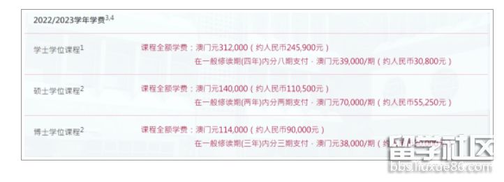學(xué)費(fèi):澳門元122600/年(約人民幣96536元)。