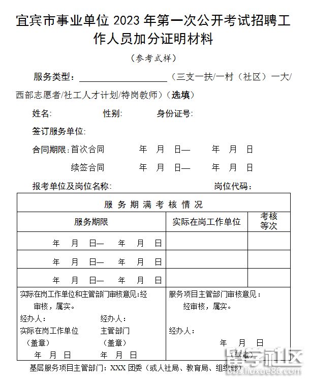 2.宜賓市事業(yè)單位2023年第一次公開考試招聘工作人員加分證明材料(參考式樣)