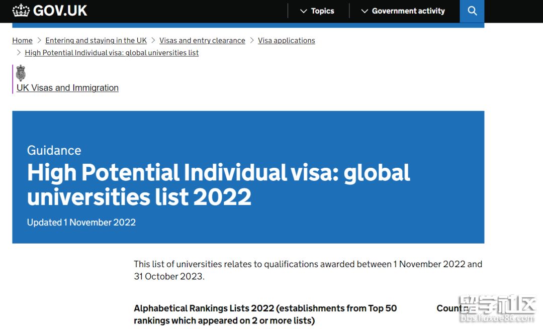 11月,英國政府公布了最新認可的高潛力人才簽證的全球大學(xué)名單,適用于2022年11月1日至2023年10月31日畢業(yè)的同學(xué),最新名單包括40所高校,相較于去年增加3所。