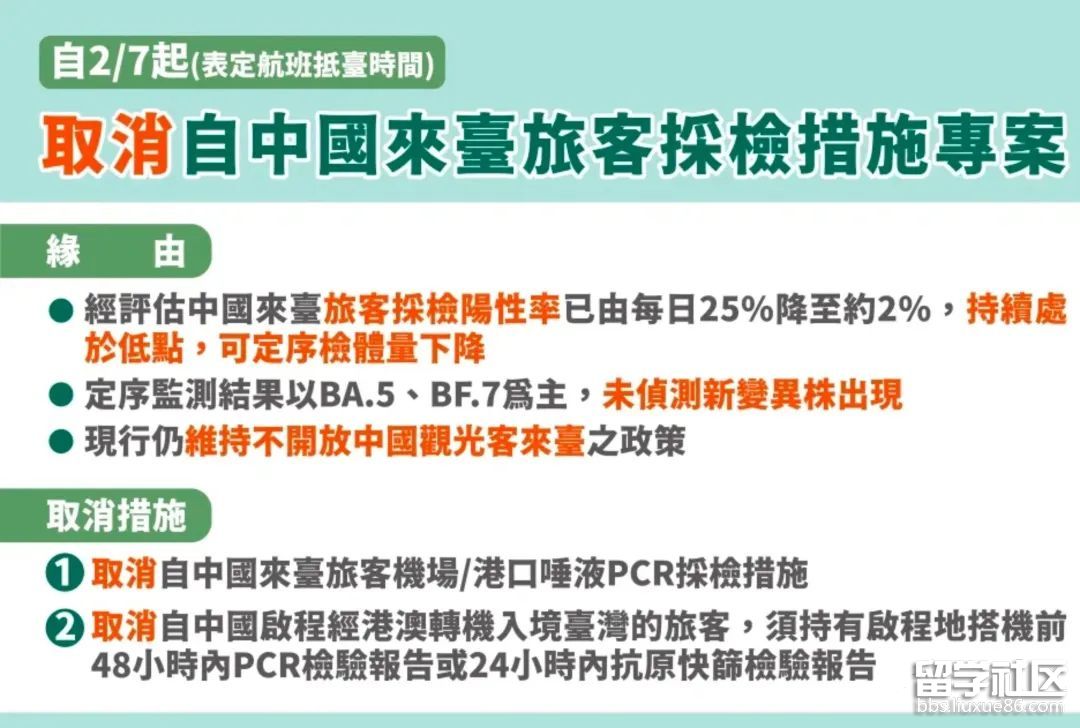2月7日起取消自大陸赴臺(tái)旅客核酸檢測(cè)
