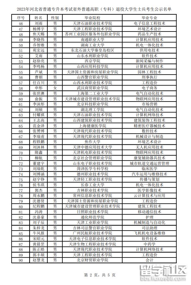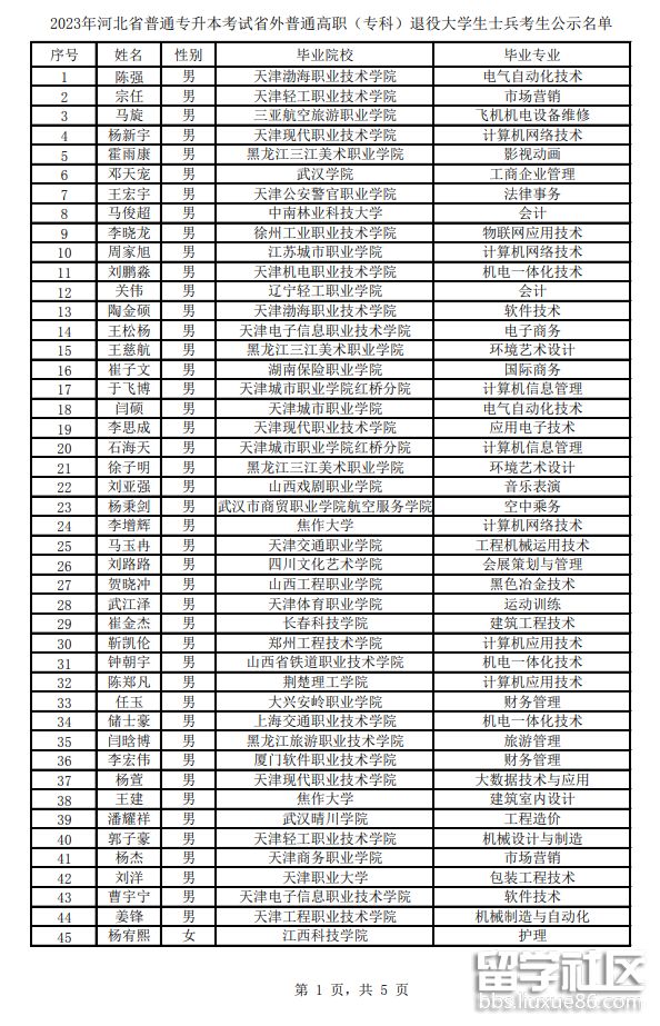 2023年河北專升本考試省外高職??仆艘鄞髮W(xué)生士兵考生名單