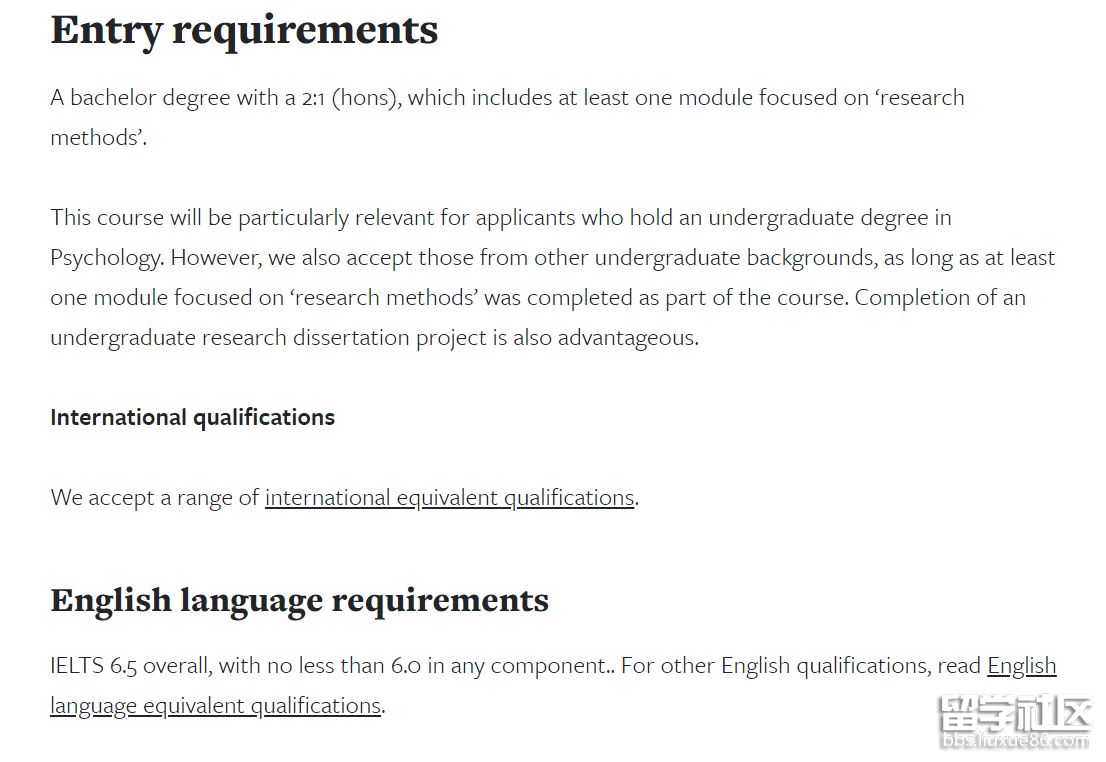 本科心理學(xué)相關(guān)學(xué)位,其他專(zhuān)業(yè)申請(qǐng)人需要至少完成一個(gè)專(zhuān)注于“研究方法”的模塊作為課程的一部分。
