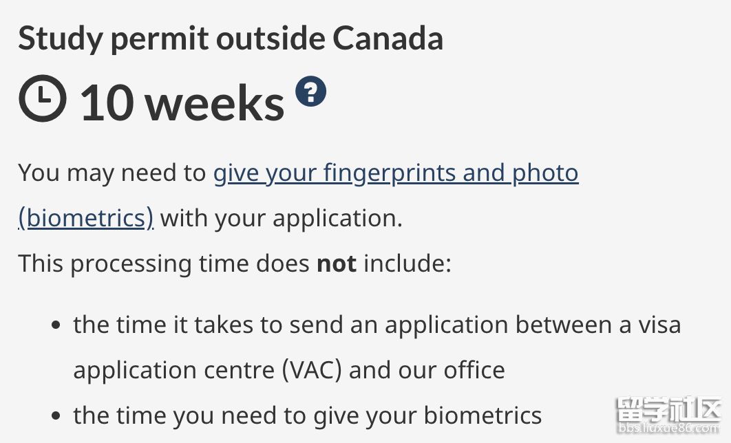 目前顯示的境外申請時間要比境內(nèi)長很多,并且仍然需要大家提供生物材料,同時,由于將學(xué)簽申請從你所在地的簽證中心過渡到加拿大需要一定時間,因此這段等待時間是不包含在10周的審理時間內(nèi)的。
