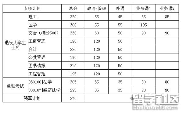 除專項計劃外,未達到以上復試基本分數(shù)要求的考生不具備我校復試(含調(diào)劑復試)資格。
