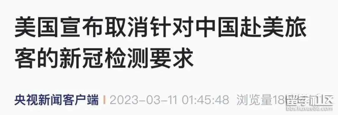 美國從3月10日開始取消針對中國赴美旅客的強制性新冠病毒檢測要求