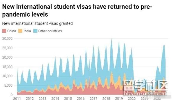 2021年12月,澳大利亞取消了對完全接種疫苗非公民的旅行限制和隔離要求,留學生數(shù)量明顯開始回升。