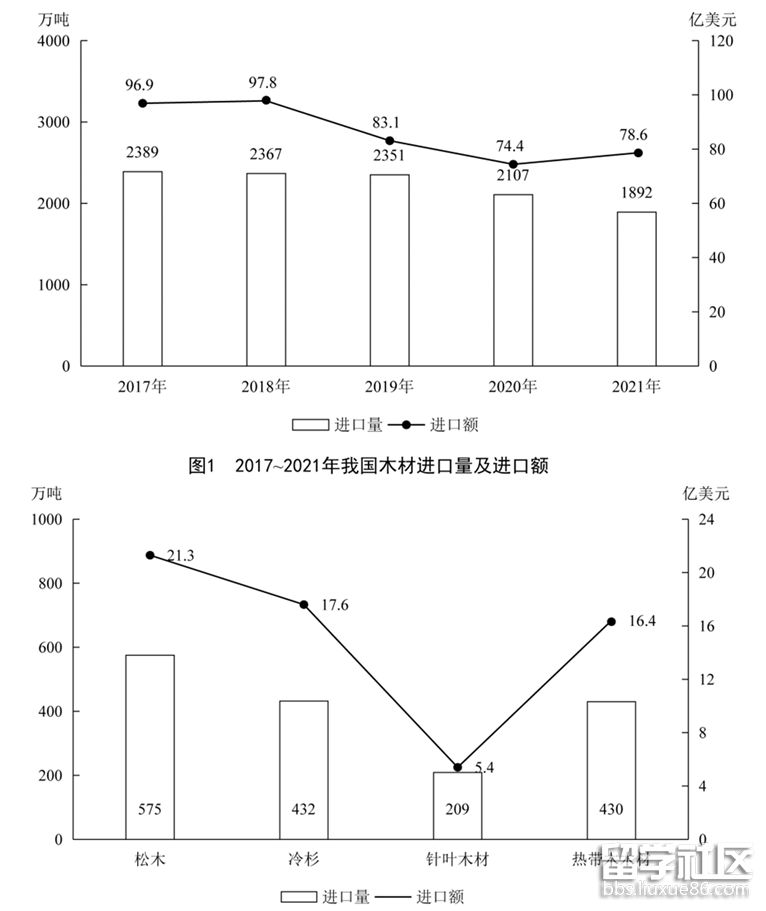 122.2017~2021,我國總計(jì)進(jìn)口了約多少億噸木材: