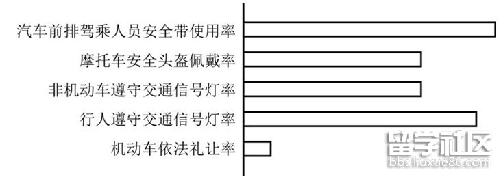 115.以下條形圖反映了2021年四季度Z省哪個(gè)城市中心城市道路交通守法率五項(xiàng)指標(biāo)之間的大小關(guān)系:
