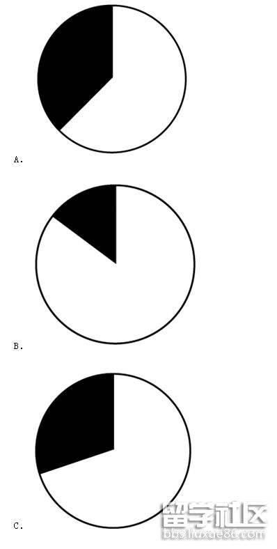 128.以下餅圖中,最能準(zhǔn)確反映2021年H省商品類(白色)和服務(wù)類(黑色)電子商務(wù)交易額占商品、服務(wù)類電子商品交易額比重關(guān)系是: