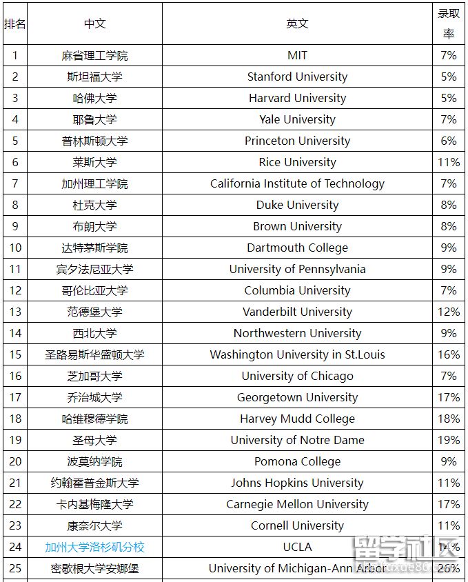 這次的排名依舊是“哈耶麻普斯”占據(jù)榜單前5;萊斯大學(xué)排名上升了1位;去年跌到第20名的加州理工學(xué)院,今年一下子進(jìn)到了第7的位置;達(dá)特茅斯學(xué)院依舊穩(wěn)占Top10。