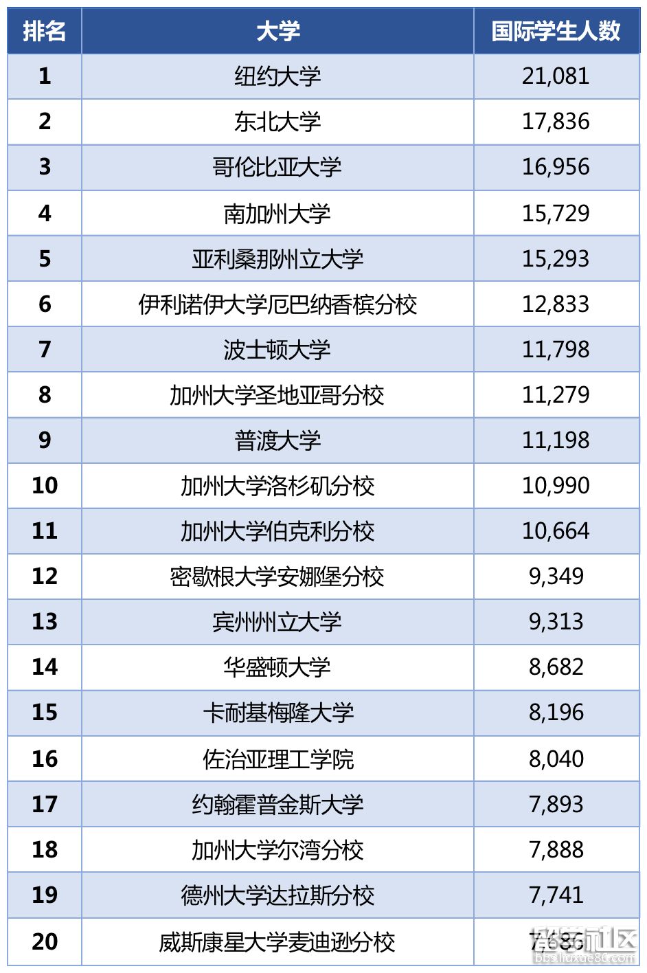 從2013年開始,紐約大學(xué)已經(jīng)連續(xù)近十年穩(wěn)坐最受國(guó)際學(xué)生歡迎高校的寶座了,在校國(guó)際學(xué)生人數(shù)比第二名的東北大學(xué)多出近四千人,想必在未來的幾年里也會(huì)繼續(xù)霸占榜首。下面的表格列出了國(guó)際學(xué)生人數(shù)最多的20所美國(guó)大學(xué),對(duì)于留學(xué)生和家庭來說,這些也是對(duì)國(guó)際學(xué)生較為友好的大學(xué),如果你喜歡國(guó)際化的氛圍,希望在留學(xué)期間接觸到世界各地不同的文化的話,一定要考慮這個(gè)表格上的大學(xué)。