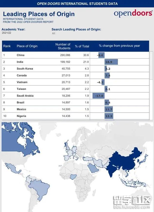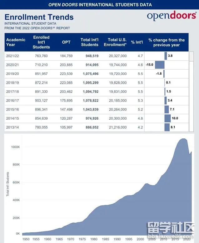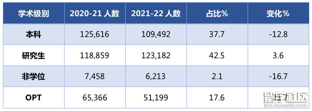 另外值得注意的是,2021-22畢業(yè)后持OPT工作的學(xué)生數(shù)量大幅減少,這可能意味著有更多留學(xué)在畢業(yè)后選擇直接回國(guó),因此就業(yè)競(jìng)爭(zhēng)壓力會(huì)更大。