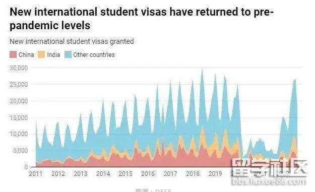 2021年12月,澳大利亞取消了對(duì)完全接種疫苗非公民的旅行限制和隔離要求,留學(xué)生數(shù)量明顯開(kāi)始回升。