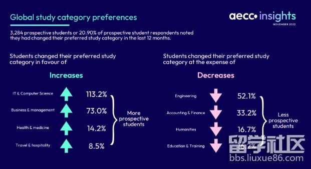 在報(bào)告中,也統(tǒng)計(jì)了留學(xué)生專(zhuān)業(yè)選擇的轉(zhuǎn)變,其中約有20.9的受訪(fǎng)者有意向改變專(zhuān)業(yè)選擇。原因主要如下: