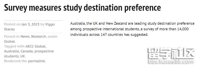 咨詢(xún)機(jī)構(gòu)AECC近期發(fā)布了一份2022年全球留學(xué)趨勢(shì)報(bào)告(AECC Insights student survey),調(diào)查了來(lái)自全球147個(gè)國(guó)家和地區(qū)的超14000位學(xué)生的留學(xué)意向。