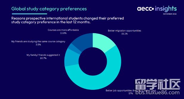 除此之外,有9.5%的學(xué)生出于“畢業(yè)后工作簽證/工作許可”的原因轉(zhuǎn)變留學(xué)意向,英國(guó)和澳洲都有留學(xué)生相關(guān)利好政策。