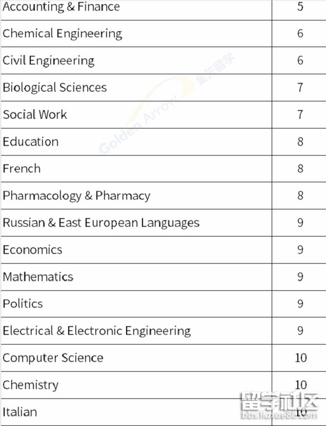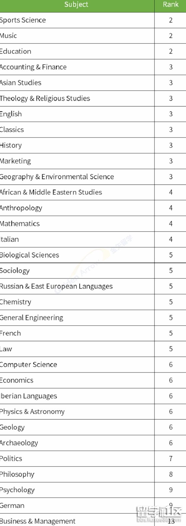 完全大學(xué)指南2023英國(guó)大學(xué)學(xué)科排名
