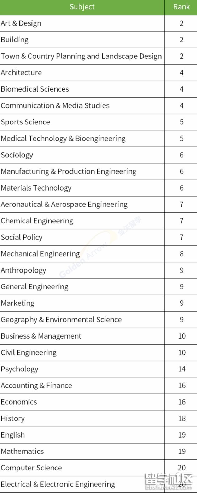 英國(guó)巴斯大學(xué)優(yōu)勢(shì)學(xué)科