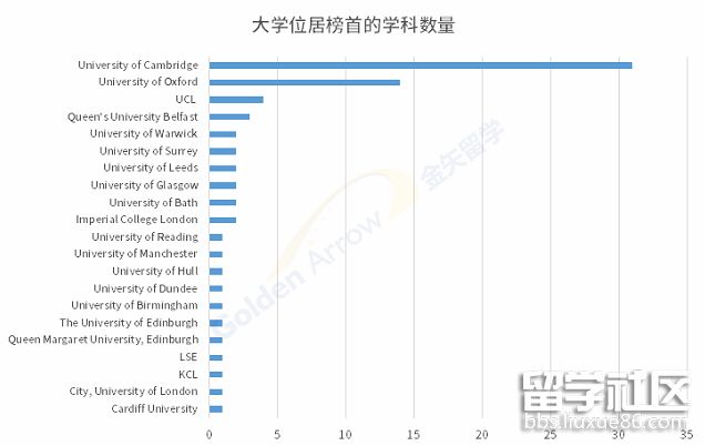 在最新的學(xué)科排名中,綜合排名第2位的劍橋大學(xué)共有31個(gè)學(xué)科位居全英第一,綜合排名位居榜首的牛津大學(xué)則有14個(gè)學(xué)科位居全英第一。