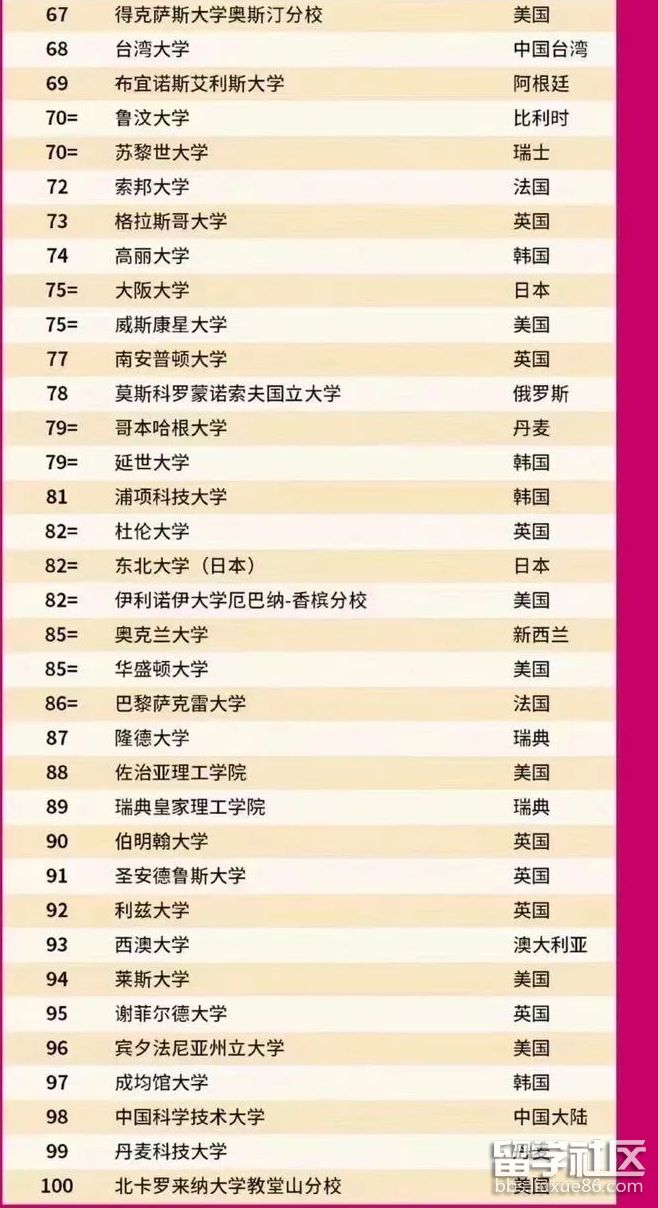 前100名大學(xué):相當(dāng)于中國的211大學(xué)。