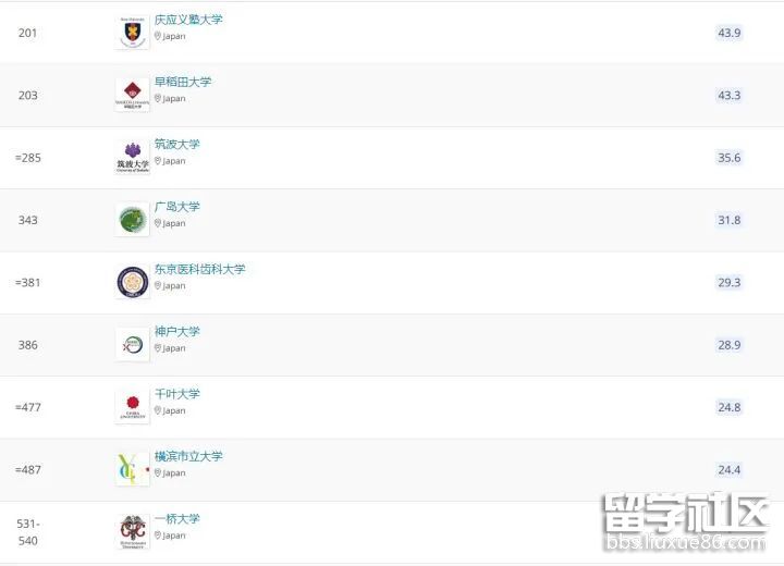 2019年QS世界大學(xué)排名,日本有44所大學(xué)入榜(占比4.3%)
