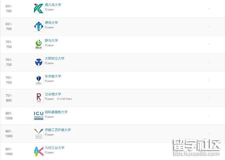 2019年QS世界大學(xué)排名,日本有43所大學(xué)入榜(占比4.0%)