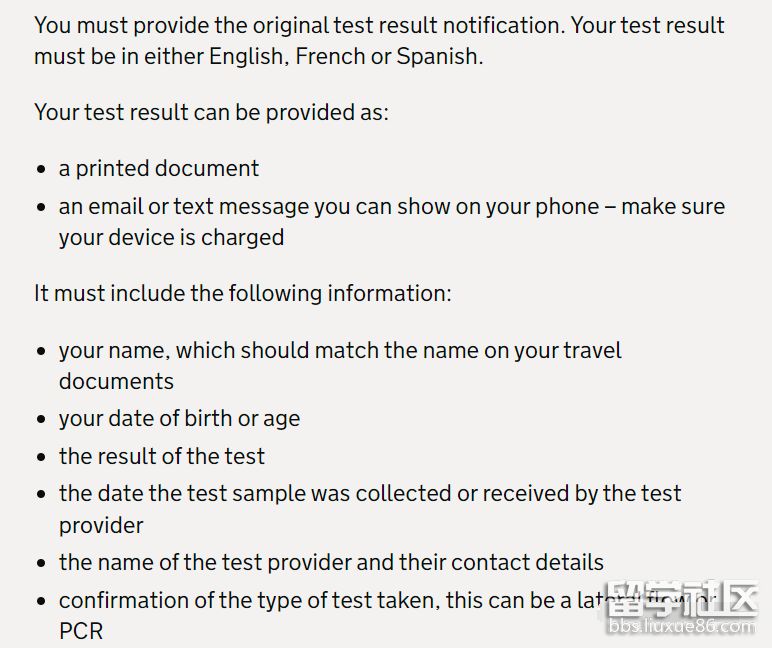 您需要出示新冠檢測結(jié)果呈陰性的通知。這將由您的航空公司進(jìn)行檢查,您可能需要在抵達(dá)英國時(shí)向入境處工作人員出示