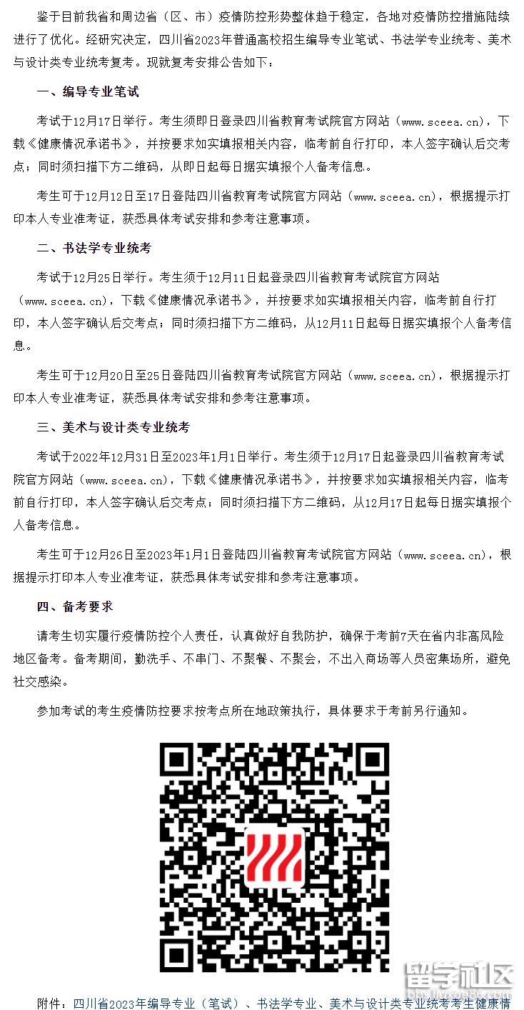 附件:四川省2023年編導(dǎo)專業(yè)(筆試)、書法學(xué)專業(yè)、美術(shù)與設(shè)計類專業(yè)統(tǒng)考考生健康情況承諾書