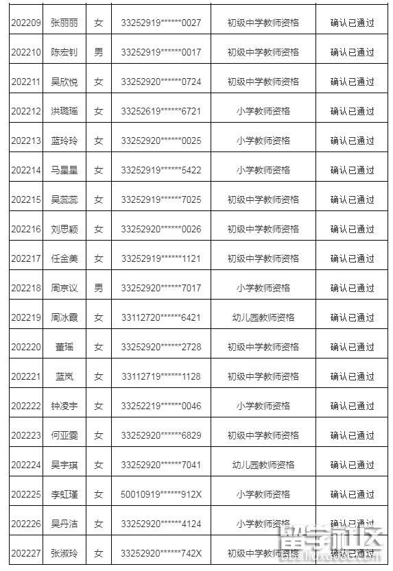 附:2022年下半年景寧畬族自治縣教師資格認定確認通過人員名單