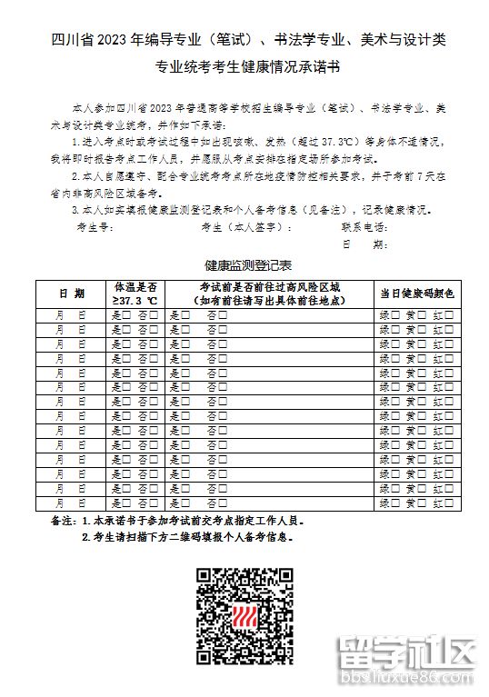 附件: 四川省2023年編 導專業(yè)(筆試)、書法學專業(yè)、美術與設計類專業(yè)統(tǒng)考考生健康情況承諾書