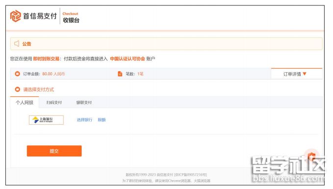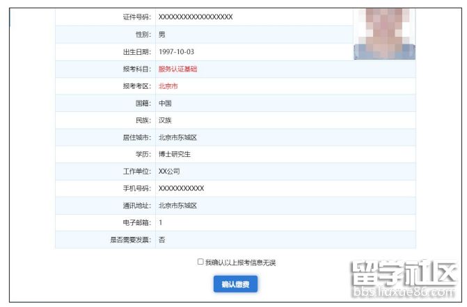 注意:提交的科目信息將決定繳費訂單金額,提交科目信息前,請仔細核對報考 科目是否準確。